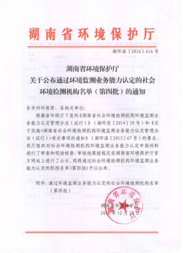 湖南省環保廳環境監測業務能力認證計量認證資質營業執照